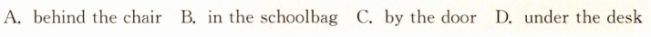 答案:点拨:选项 A 意为“在……下面”,选项 B 意为“在……里面”,选项 C 意为“(表示对象、用途等)给,对”。根据后句“Let me pick it up for you.”可推知,钢笔在椅子下面。故选 A。
