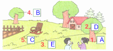 A. Behind the tree. B. Under the tree. C. By the tree.