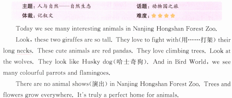 |主题:人与自然——自然生态|话题:动物园之旅|