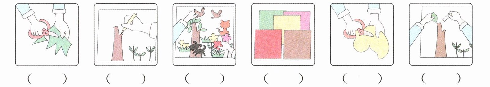 我的名字叫图图。我有一些彩色的纸。我可以用它做一个花园。首先,把绿色的纸剪成叶子和草。然后从黄色、红色和粉色的纸上剪出一些花。接着,剪出一些黄色的鸭子和一些棕色的鸟。再剪出一只黑色的狗和一只橙色的猫。下一步,在纸上画一个棕色的树干和一些绿色的茎。最后,粘贴叶子和花。也粘贴草和动物。看!这是我美丽的花园。