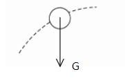 (符合上述描述的重力示意图,作用点在足球球心,竖直向下带箭头线段,标注G)