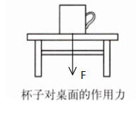 杯子对桌面的压力:作用点选取桌面与杯子接触区域的中心,方向垂直桌面向下,用带箭头的线段表示,标注为$F_{压}$。
