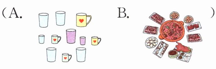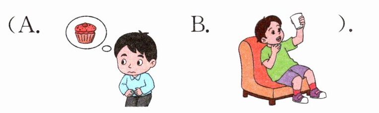 1. 句子“I'm thirsty.”意为“我渴了”,对应图片B(图片B为与口渴相关的内容);