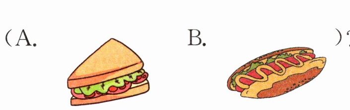 4. 句子“How's the hot dog?”意为“这个热狗怎么样?”,对应图片B(图片B为热狗相关内容);