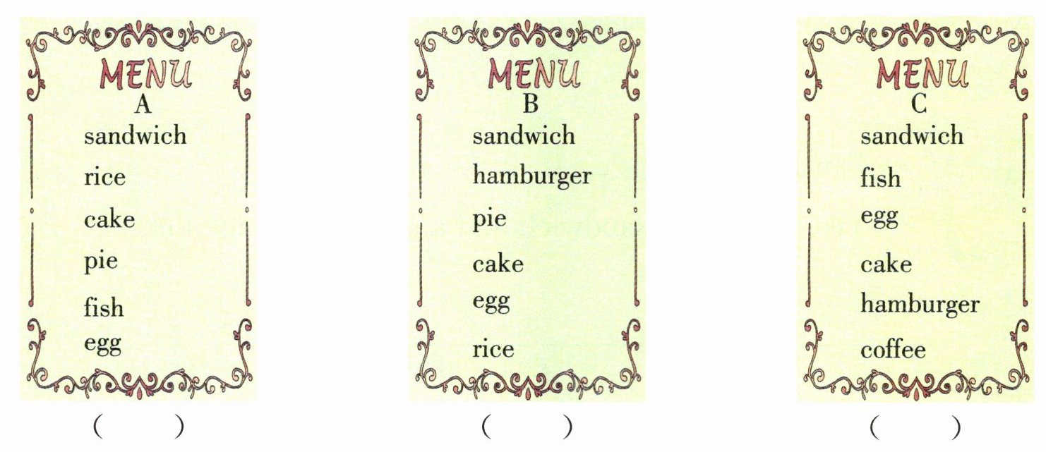 三、Mr Brown、Helen 和 Mike 一起外出吃饭,请根据他们和服务员的对话,选择正确的答案。