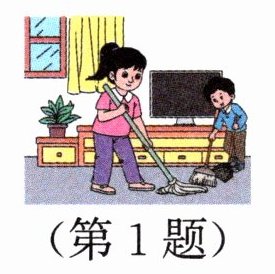 本题结合图片考查学生对日常家务相关词汇、固定短语的掌握,以及现在进行时的运用,语境清晰,提示明确,有助于学生结合生活场景巩固基础英语知识。