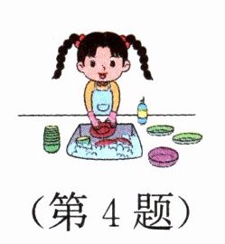 4. 第四句“washing the...”联想固定短语“wash the dishes”(洗餐具)来填空;