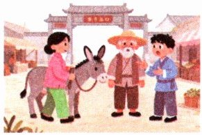 三、[新素材]Ruby 给我们讲述了一个全新的《老农卖驴》的故事。请你根据故事内容,完成任务。