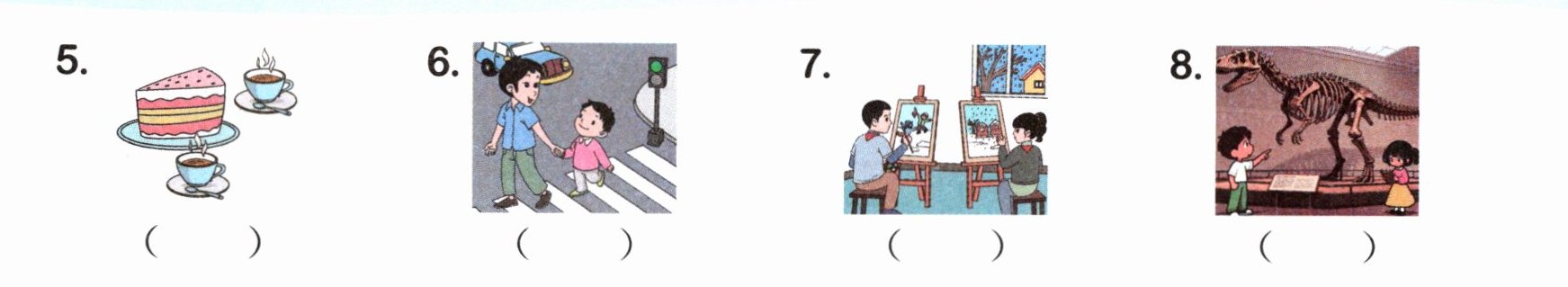 本题考查学生的基础听力理解能力,结合日常场景、物品、动作的词汇认知,需要学生提前熟悉图片信息,听录音时精准抓取关键内容,有助于巩固学生的听力反应能力和词汇应用能力。